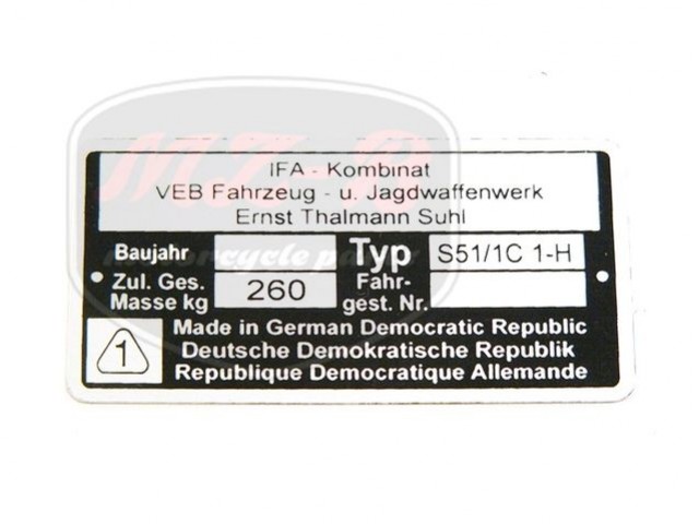 SIMSON 51 TYPSCHILD /S51/ 1C1-H/