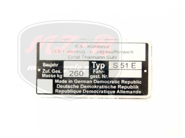 SIMSON ENDURO TYPSCHILD /S51 E/