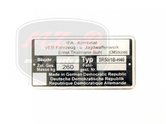 SIMSON ROLLER TYPSCHILD /SR50/1B-H40